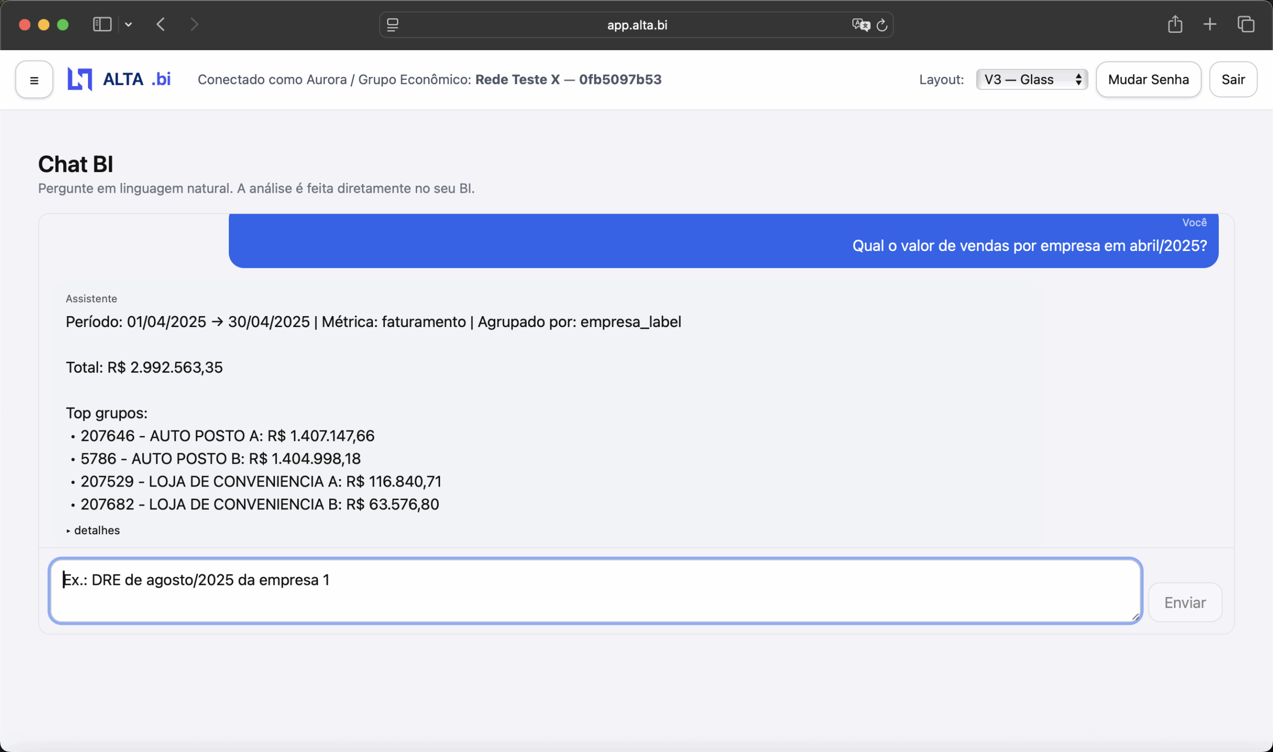 Conecte ERP/PDV, centralize dados por e explore painéis, pivôs e insights com IA. Seguro, escalável e pronto para seu posto ou sua rede.